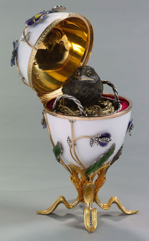 У наших бабушек и пробабушек, порой собирались целые связки таких подарков. Их носили как бусы, надевали как браслеты или кулон из яйца на тонкой цепочке - на шею. Однажды царь Александр III заказал Фаберже Пасхальное яйцо для супруги, и появилось первое из знаменитых яиц - Курица. Это яйцо не отличалось большой сложностью, снаружи было покрыто белой эмалью, открывалось на две половинки, а внутри был спрятан "сюрприз" - курица. Прямо скажем, не вершина ювелирного искусства. Но супруга царя была в восторге. С этого и пошла традиция семьи Романовых - заказывать Фаберже каждый год Пасхальное яйцо. И с каждым разом яйца становились сложнее, со сложными "сюрпризами", и изготовление занимало около года.