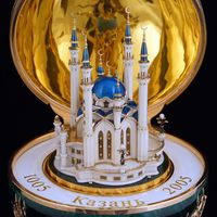 Высота мечети не позволяла вставить ее в яйцо непосредственно. Пришлось придумать механизм, автоматически поднимающий мечеть при открытие яйца, и опускающий – при закрытии.