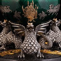 Над созданием произведения трудились камнерезы А. Петров, Ю. Артамонов. Ювелиры А. Линник и С. Третьяков, эмальер И. Максимова, закрепщики С. Захаров и С. Косарев.
