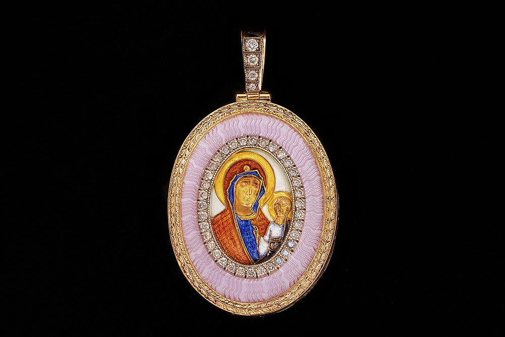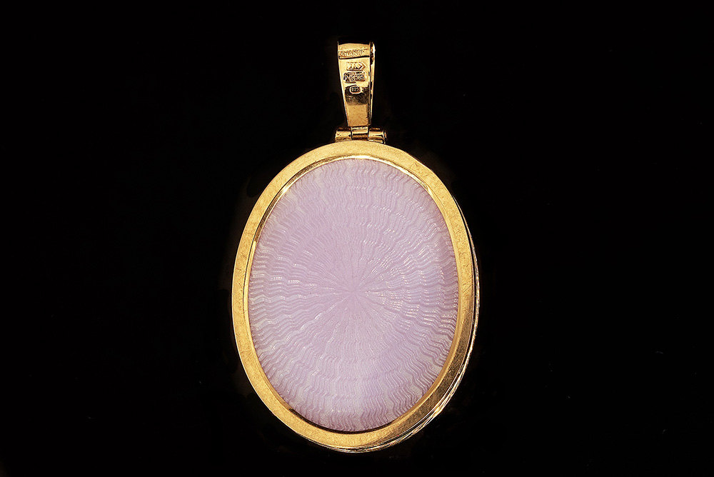 Золото, серебро, бриллианты, прозрачная эмаль по гильошированному фону, перегородчатая эмаль.