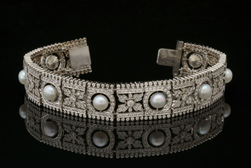 Золото белое, бриллианты, жемчуг